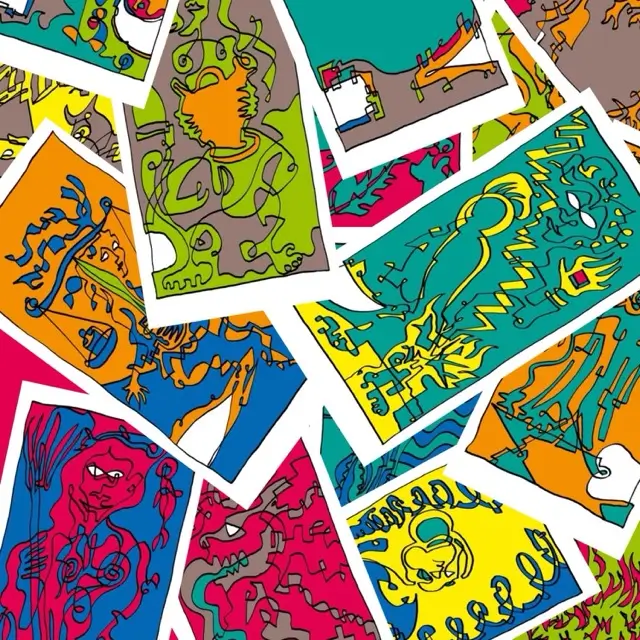 La Xaula consists of 7 masculine cards, 7 feminine cards, 7 androgynous cards and 3 neutral cards. Being each card duplicated in color and in black & white. Please note that nouns and articles in Catalan, La Xaula's original language, are gendered. Quite often, its nouns and articles seemingly contain misspellings or are oddly gendered, with articles unsuitable for the gender of the noun, thus creating a third gender category which we have noted in the translation as “androgynous”. The translations above include the categories masc. (masculine), fem. (feminine), androgynous and neutral, so that non-Catalan readers can fully grasp this aspect of the deck. Of these cards, the first 21 are figurative and portray people, animals, celestial bodies, objects and spaces. The remaining cards, the three worlds, are much more abstract.